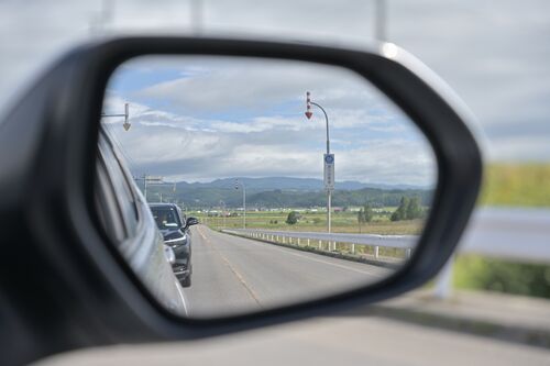 富良野から旭川へ戻って旭山動物園へ。 動物園は散々子供を連れて訪れているし、ベタな観光地に乗り気でない私。 行けば行ったで撮影してしまうのだけれど。 信号で止まったタイミングでミラー越しに景色を撮る。 行きに通った道をひたすら戻る。 もうホント…